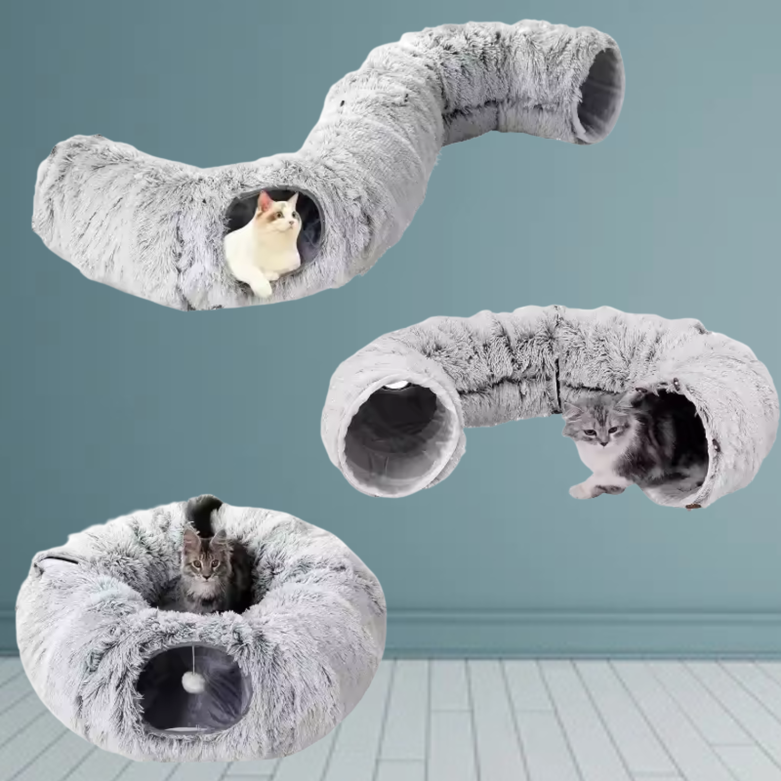 MysGrotta™ kan formas som en grotta, båge eller rund säng – perfekt för lek, bus och vila! Katterna älskar att smyga, gömma sig och mysa i sitt nya favoritställe. 🐾💤